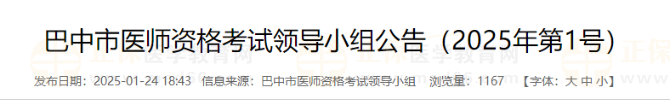 四川省巴中市公衛(wèi)醫(yī)師資格考試領(lǐng)導(dǎo)小組公告(2025年第1號)