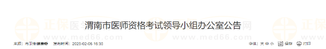 陜西省渭南市2025醫(yī)師資格考試領(lǐng)導(dǎo)小組辦公室公告!請相關(guān)考生仔細查看具體要求,做好報名工作準備!