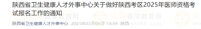 陜西省衛(wèi)生健康人才外事中心關于做好陜西考區(qū)2025年醫(yī)師資格考試報名工作的通知!請相關考生仔細查看具體要求,做好報名工作準備!