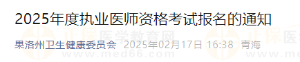 青海省果洛州2025年度全省公衛(wèi)執(zhí)業(yè)醫(yī)師資格考試報名審核通知