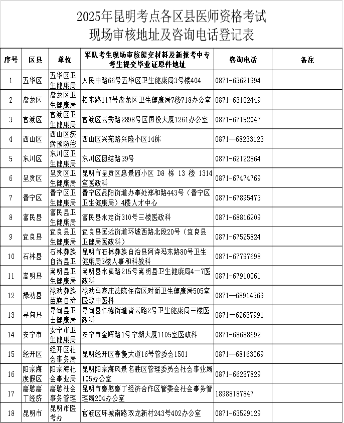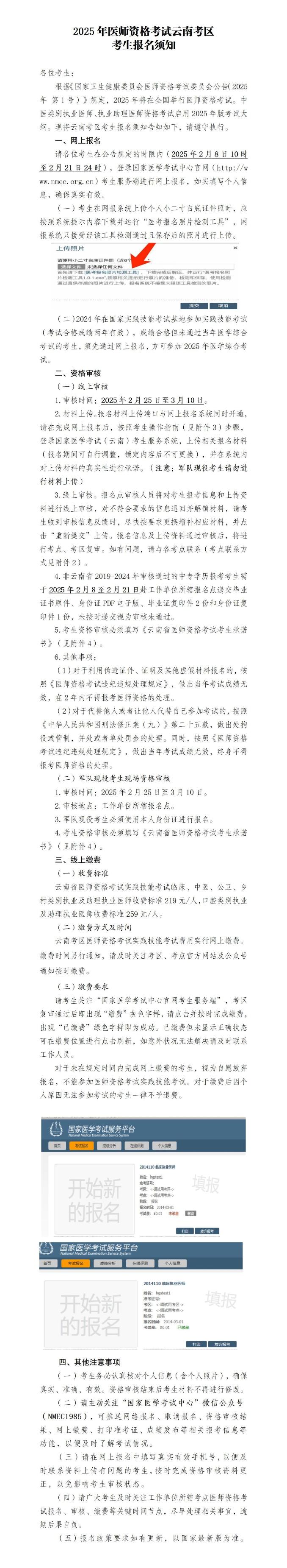 根據(jù)《中華人民共和國醫(yī)師法》、《醫(yī)師資格考試暫行辦法》規(guī)定和《國家衛(wèi)生健康委員會醫(yī)師資格考試委員會公告》(2025年第1號)要求,結(jié)合昆明考點實際,現(xiàn)將2025年度醫(yī)師資格考試昆明考點報考須知告知如下,請遵守執(zhí)行。