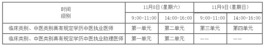 醫(yī)學(xué)綜合考試實(shí)行計(jì)算機(jī)化考試,軍隊(duì)現(xiàn)役人員加試軍事醫(yī)學(xué),院前急救崗位和兒科專(zhuān)業(yè)加試相應(yīng)內(nèi)容。全國(guó)考試時(shí)間如下: