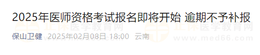 云南保山考點(diǎn)2025年公衛(wèi)醫(yī)師資格考試報名即將開始 逾期不予補(bǔ)報