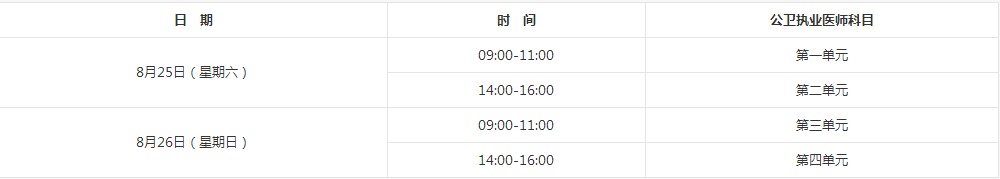 2018年公衛(wèi)執(zhí)業(yè)醫(yī)師考試時間如下: