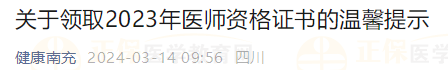 棗莊市|關(guān)于領(lǐng)取2023年醫(yī)師資格證書的通知