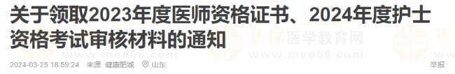 關(guān)于領(lǐng)取2023年度醫(yī)師資格證書、2024年度護(hù)士資格考試審核材料的通知