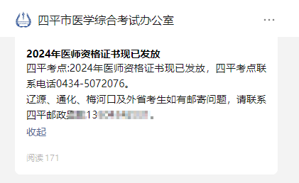 吉林四平考點(diǎn)2024年醫(yī)師資格證書發(fā)放通知!