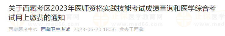 通知原文:速去繳費(fèi)!西藏考區(qū)2023醫(yī)師資格綜合筆試?yán)U費(fèi)6月20日開始!