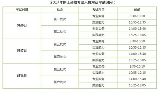 護士執(zhí)業(yè)資格考試日期在舉行考試3個月前向社會公布。2017年護士考試將全面實施人機考試,時間定于5月6-8日舉行,每半天為一個輪次,分為6輪依次進行??忌鷮㈦S機分配至其中一個輪次,參加專業(yè)實務(wù)和實踐能力兩個科目的考試。具體時間如下:
