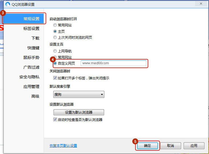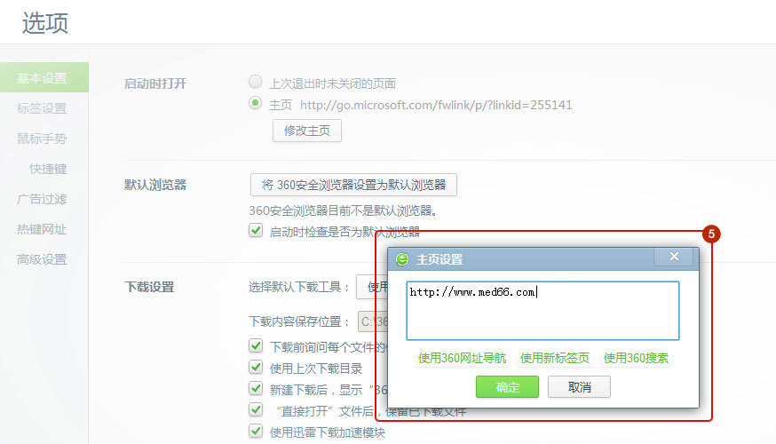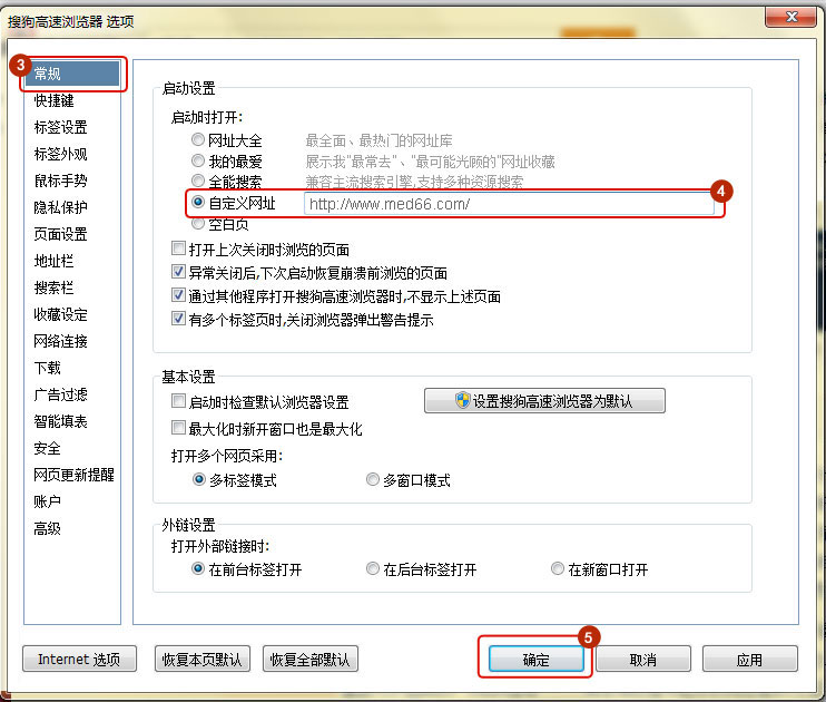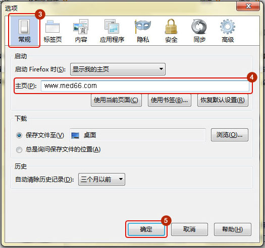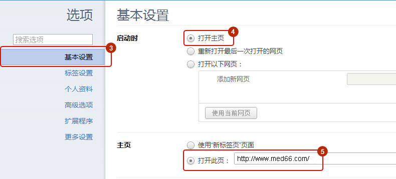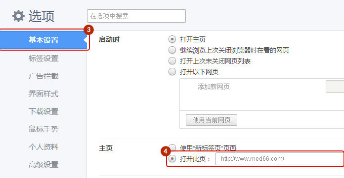 選擇常規(guī)設(shè)置選項(xiàng), 勾選自定義網(wǎng)址,并輸入www.tymfj.cn, 點(diǎn)擊保存,就可以設(shè)定醫(yī)學(xué)教育網(wǎng)為主頁了。