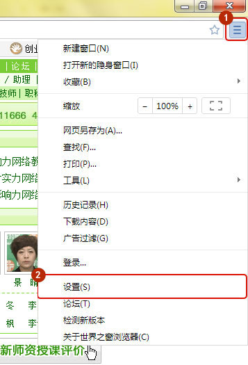 打開世界之窗瀏覽器,然后點(diǎn)擊右上角列表按鈕-設(shè)置,如圖所示: