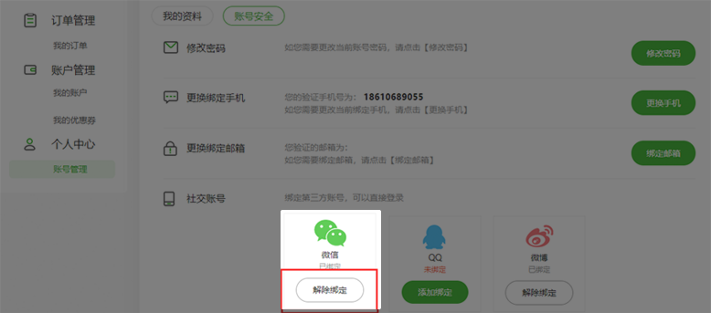 第三步:點擊“解除綁定”。