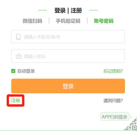 第二步:選擇賬號密碼登錄后,點擊注冊。