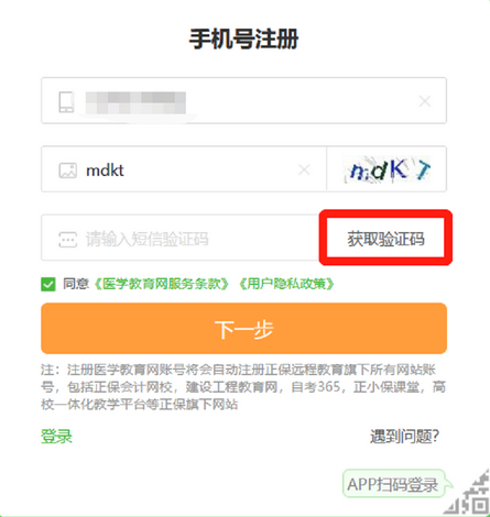 方法二-手機驗證碼登錄:第一步,輸入手機號碼及圖片驗證碼后,點擊獲取驗證碼。