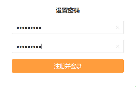 第五步:輸入兩遍賬號密碼后,點擊注冊并登錄。