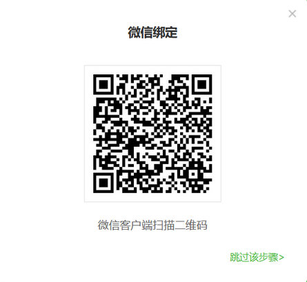 第六步:可選擇是否綁定微信,如不綁定,點擊跳過該步驟。