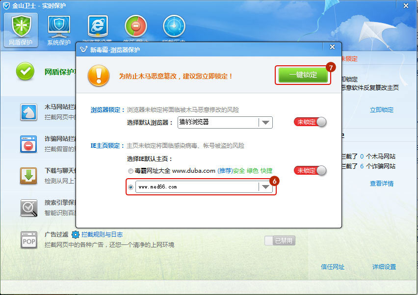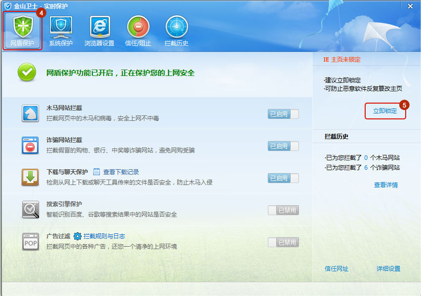 第二步:打開“網(wǎng)盾保護(hù)”選項(xiàng)卡,點(diǎn)擊右方“立即鎖定”。