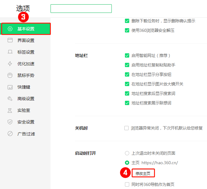 第二步:在基本設(shè)置中,選擇修改主頁。