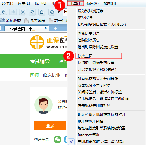 提示:如果無法設(shè)置醫(yī)學(xué)教育網(wǎng)為您的上網(wǎng)主頁,可能您的瀏覽器已中毒,請(qǐng)先查殺病毒。