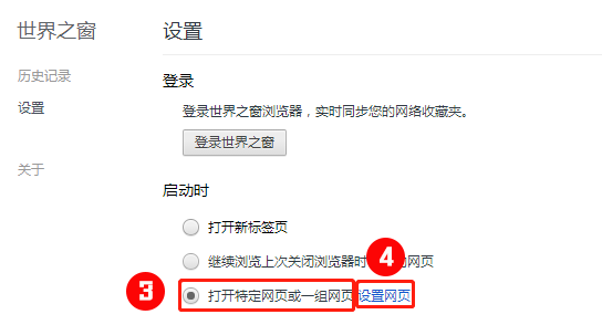 第二步:點(diǎn)擊“打開特定網(wǎng)頁或一組網(wǎng)頁”后,點(diǎn)擊“設(shè)置網(wǎng)頁”。