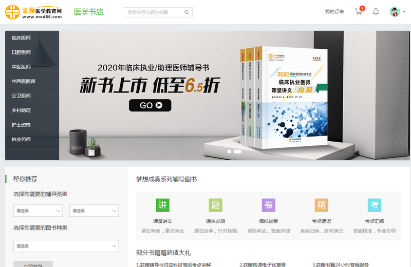 第一步:進(jìn)入正保醫(yī)學(xué)教育網(wǎng)醫(yī)學(xué)書(shū)店,選擇輔導(dǎo)類(lèi)別。