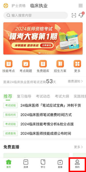 第一步:打開(kāi)正保醫(yī)學(xué)教育網(wǎng)APP,點(diǎn)擊導(dǎo)航“我的”。