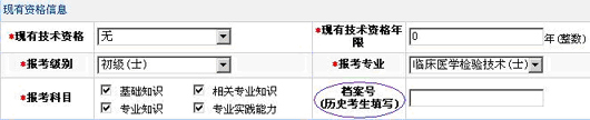 2、 歷史考生申報(bào):其申報(bào)過(guò)程與新參加考試考生申報(bào)一致,唯一區(qū)別為歷史考生須填入以前的檔案號(hào)。如圖(3-17)。