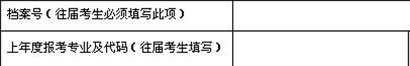 上年度報(bào)考專業(yè)及代碼,如上年度參加考試的考生,必須在申報(bào)表上手工填寫上年度所參加考試的專業(yè)和代碼,如下圖: