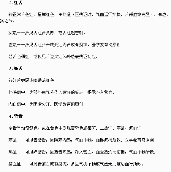 醫(yī)學(xué)教育網(wǎng)——中西醫(yī)結(jié)合執(zhí)業(yè)助理醫(yī)師考試輔導(dǎo)系列談之《中醫(yī)診斷學(xué)》輔導(dǎo):舌色變化的臨床意義