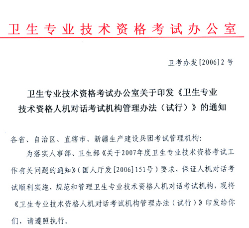 衛(wèi)生專業(yè)技術(shù)資格考試辦公室關(guān)于印發(fā)《衛(wèi)生專業(yè)技術(shù)資格人機(jī)對(duì)話考試機(jī)構(gòu)管理辦法(試行)》的通知