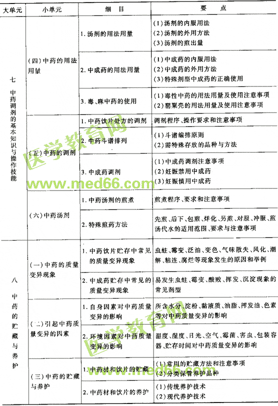 2007年執(zhí)業(yè)藥師考試大綱——中藥綜合知識與技能(三)