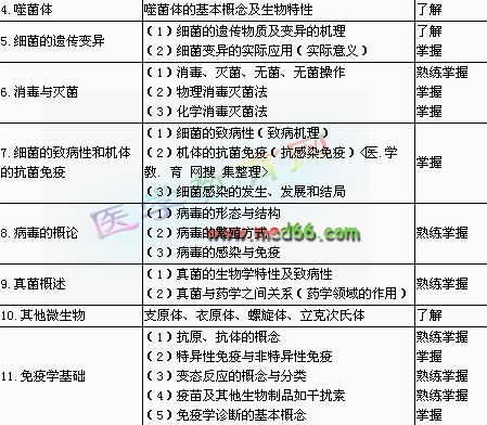 | 3.細(xì)菌的增殖與代謝 | (1)細(xì)菌的生長(zhǎng)繁殖 (2)細(xì)菌的新陳代謝 (3)細(xì)菌的人工培養(yǎng) | 熟練掌握 熟練掌握 掌握 | |