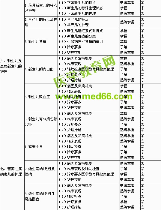 | 3.小兒的營養(yǎng)與喂養(yǎng) | (1)能量與營養(yǎng)素的需要 (2)嬰兒喂養(yǎng) | 熟練掌握 | ① ③ | |