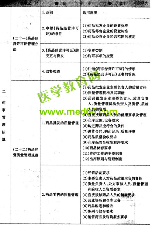 - · 2008年執(zhí)業(yè)藥師考試大綱——藥事管理與法規(guī)(一)