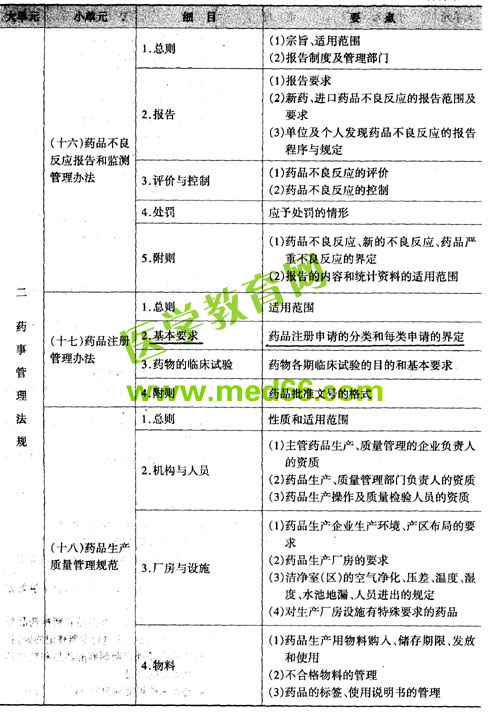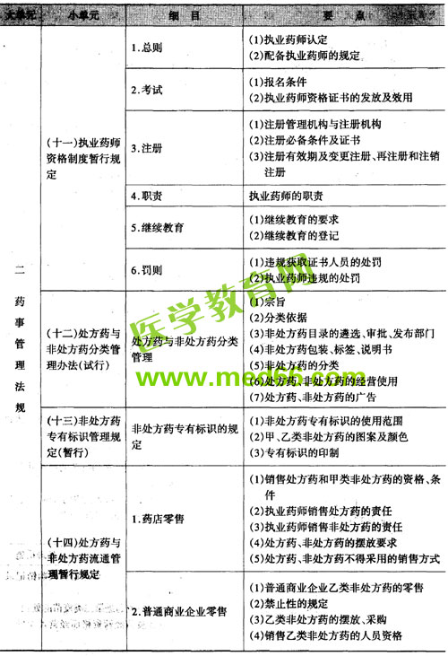 - · 2008年執(zhí)業(yè)藥師考試大綱——藥事管理與法規(guī)(一)