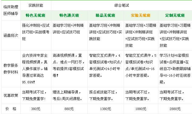醫(yī)學(xué)教育網(wǎng)臨床助理醫(yī)師考試輔導(dǎo)培訓(xùn)班共有特色直達(dá)班、精品無憂班、實(shí)驗(yàn)無憂班和定制無憂班四大班次,根據(jù)不同考生的需求特別制定: