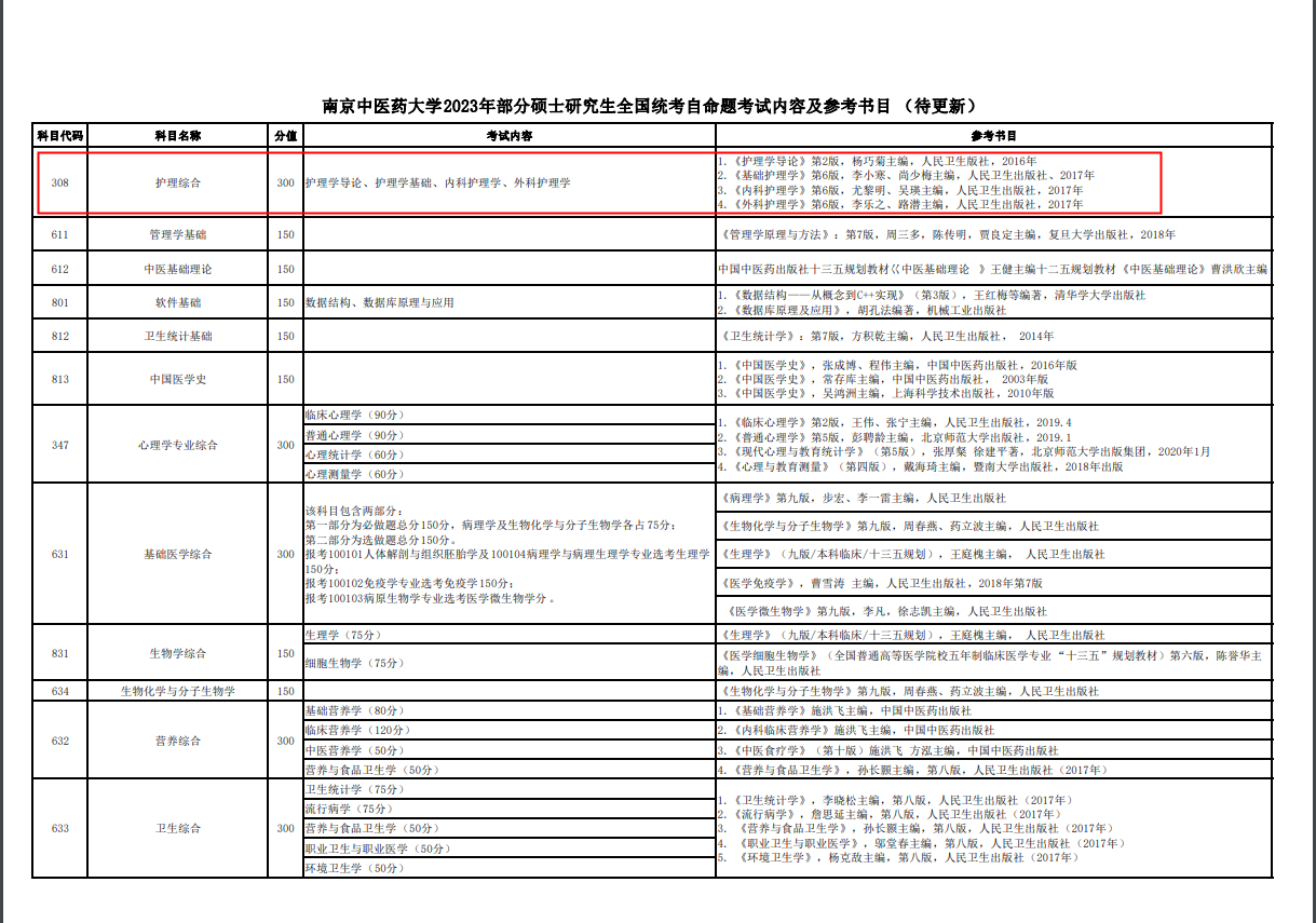 推薦閱讀:開(kāi)始更新!2023年碩士研究生護(hù)理綜合308考試大綱匯總