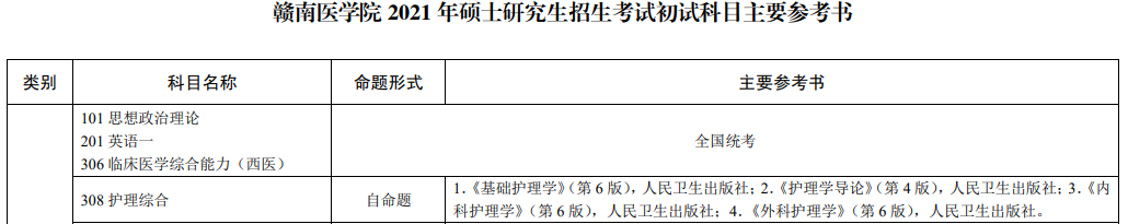 贛南醫(yī)學(xué)院2021年護(hù)理碩士研究生招生考試初試科目