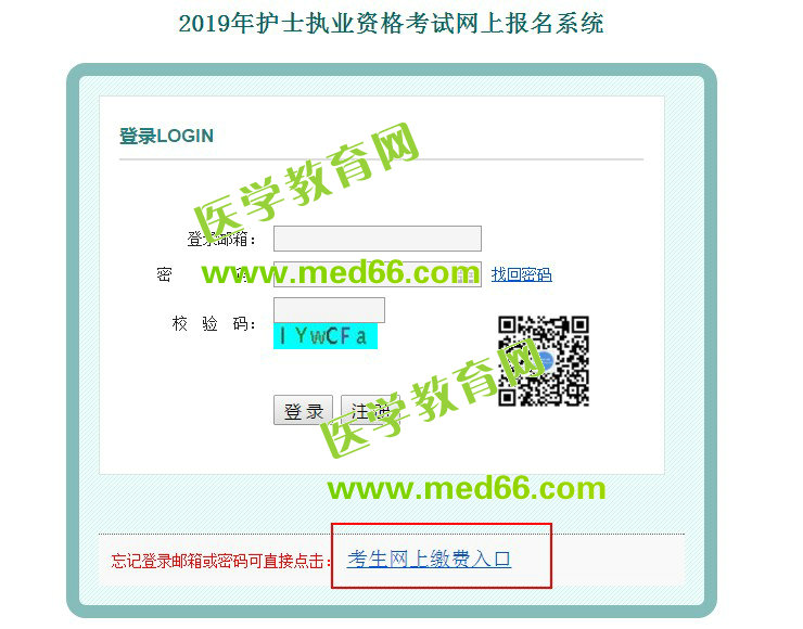 2019年護(hù)士執(zhí)業(yè)資格考試網(wǎng)上繳費(fèi)入口: http://nurse.21wecan.com/wbhsks2019/login.do?method=initLog&projectId=2019