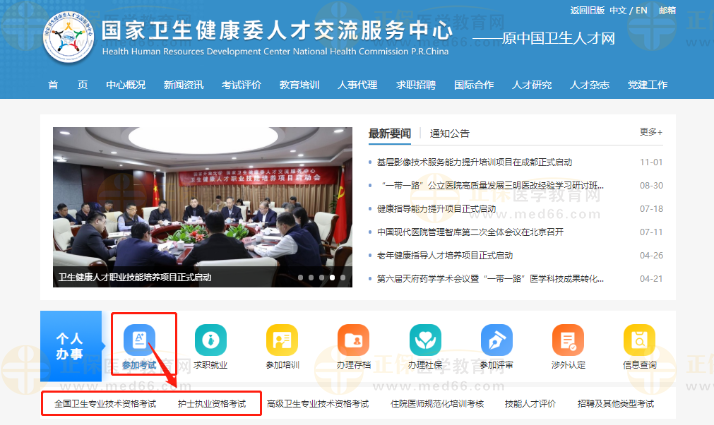 (一)登錄國家衛(wèi)生健康委人才交流服務(wù)中心(原中國衛(wèi)生人才網(wǎng)):選擇“護士執(zhí)業(yè)資格考試”。