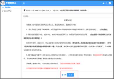 3.認真閱讀《重要聲明》和《考生誠信考試承諾書》,確保充分知曉考試相關(guān)規(guī)定和要求,勾選“我同意并確認”后點“下一步”,進入報名信息填寫頁面。