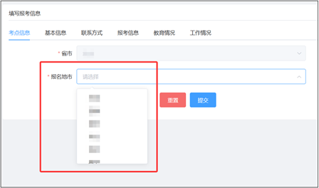 修改考區(qū)操作將會清空此項目下已經(jīng)填寫的報名信息,但不影響注冊信息和基本信息。