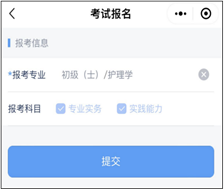 (4)“報考專業(yè)”選擇“初級(士)/護理學,“報考科目”默認勾選所有科目不能修改。