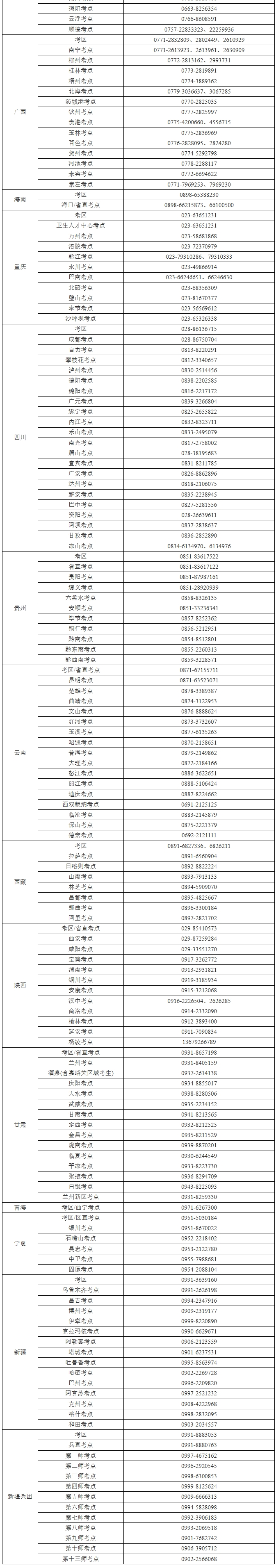 衛(wèi)健委:護(hù)士執(zhí)業(yè)資格考試各考區(qū)、考點咨詢電話