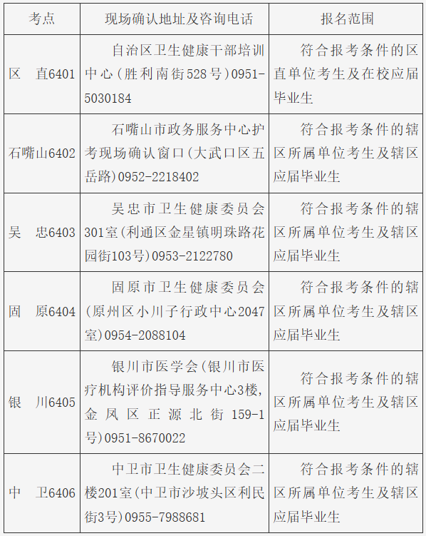 三、各考點現(xiàn)場確認地址及咨詢電話
