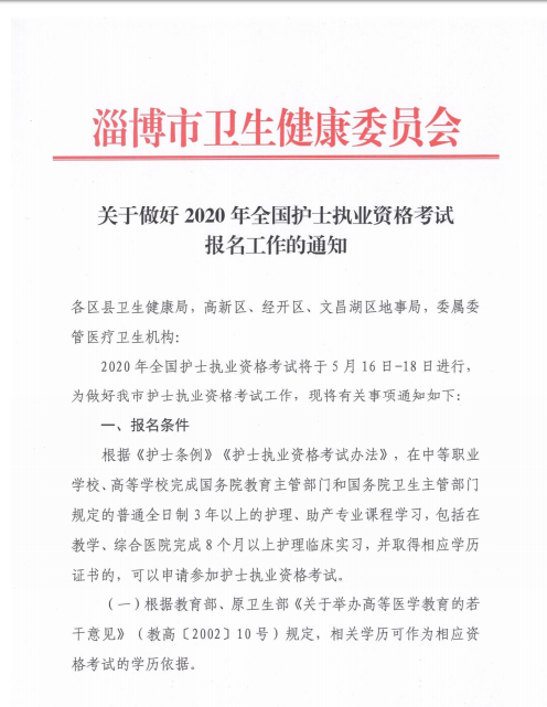 山東淄博2020年護(hù)士考試報(bào)名通知