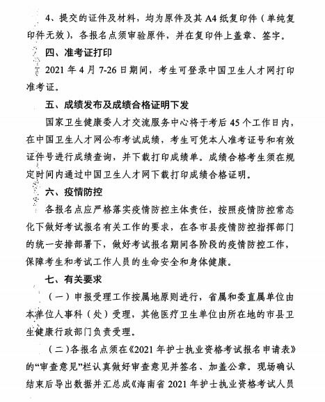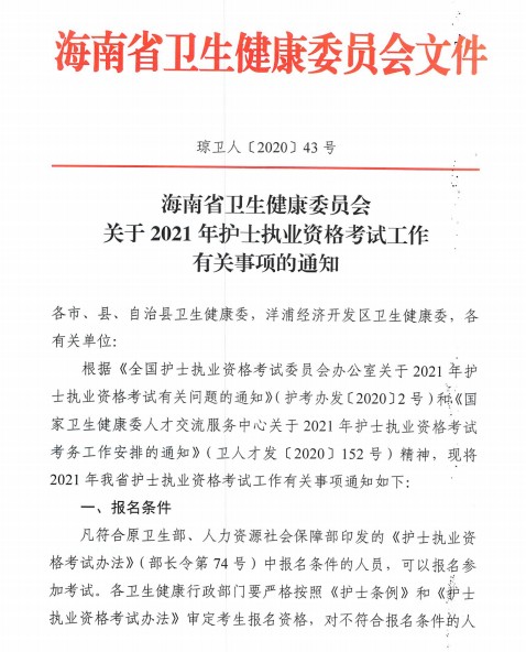 海南2021年護(hù)士資格考試工作有關(guān)事項(xiàng)的通知