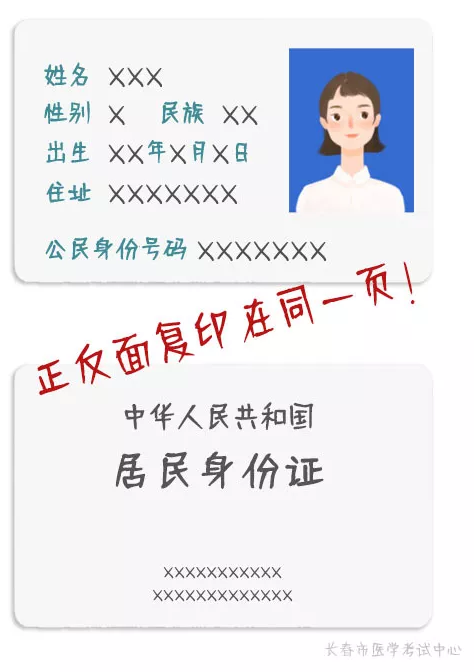 (2)本人身份證明原件及復(fù)印件1份(要求將身份證明正反面復(fù)印在同一張A4紙張的同一面,見(jiàn)圖例);
