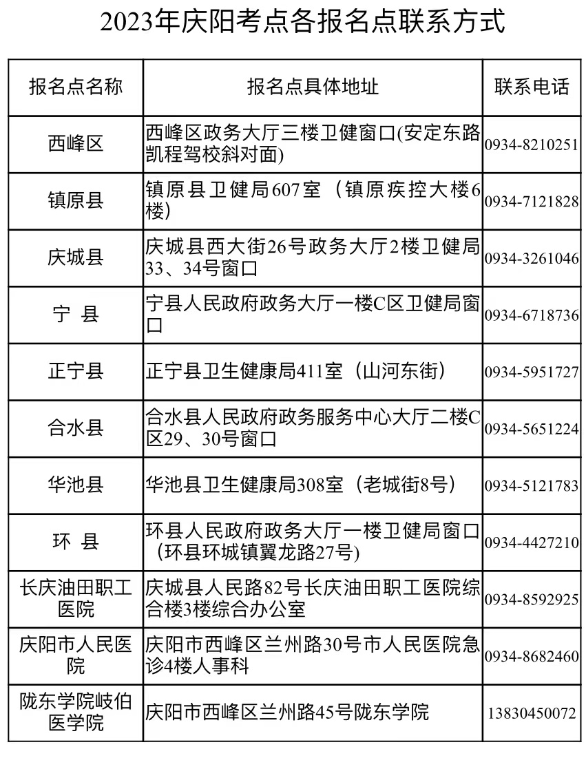 附件:2023年慶陽考點各報名點聯(lián)系方式