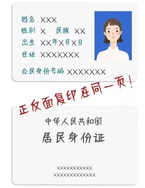 2.本人有效期內(nèi)的身份證原件、復(fù)印件各1份(要求將身份證正反面復(fù)印在同一張A4紙張的同一面,見圖例2);